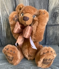 Caramel is an 11" artist teddy bear is made from a hand drawn pattern exclusive to Tindle Bears and has the following features,