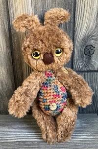 This Tindle Monster is a 9" artist teddy bear is made from a hand drawn pattern exclusive to Tindle Bears and has the following features,